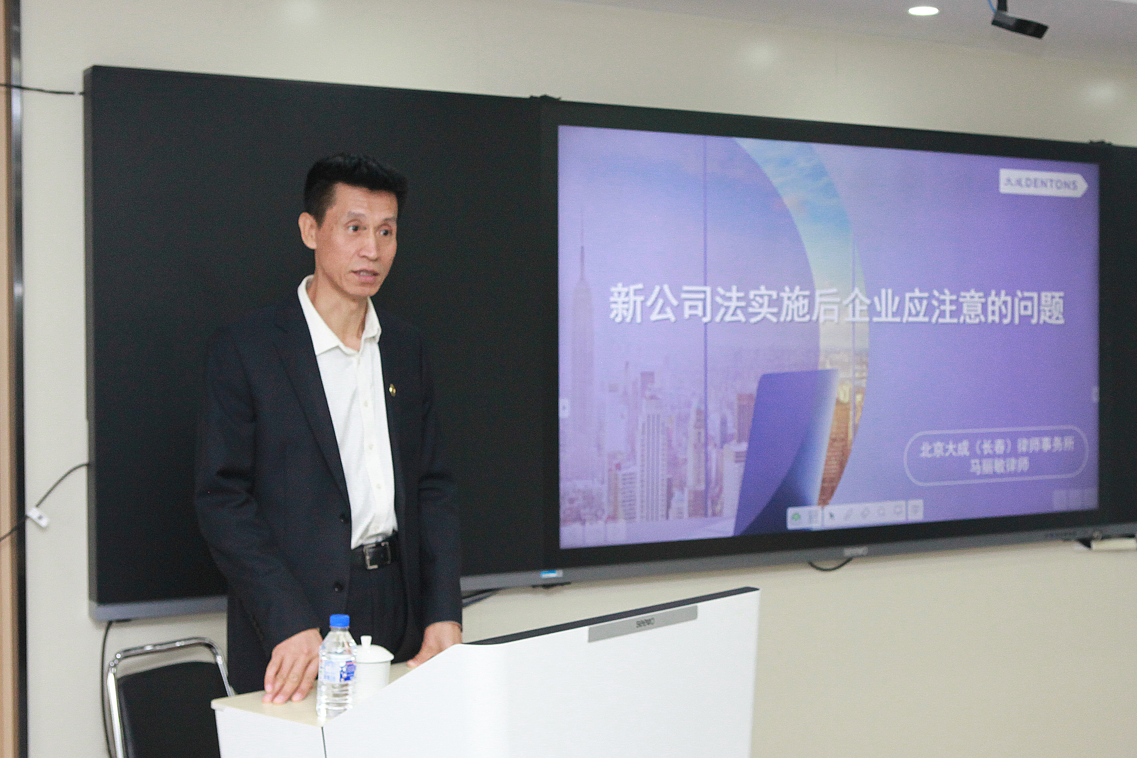 新公司法將于2024年7月1日正式實施,為增強集團與各成員企業(yè)遵法、守法的法律意識,更好地服務企業(yè)生產經營活動,提高企業(yè)防范法律風險能力,實現(xiàn)集團穩(wěn)定、持續(xù)、健康發(fā)展的目標。5月31日上午,集團舉辦了關于新公司實施的法務培訓會,特邀北京大成(長春)律師事務所馬麗敏律師擔任專題講師。會議由集團副總裁宋立武主持,集團班子成員、各分子公司經營班子成員、總部各部室部長30余人參加培訓。